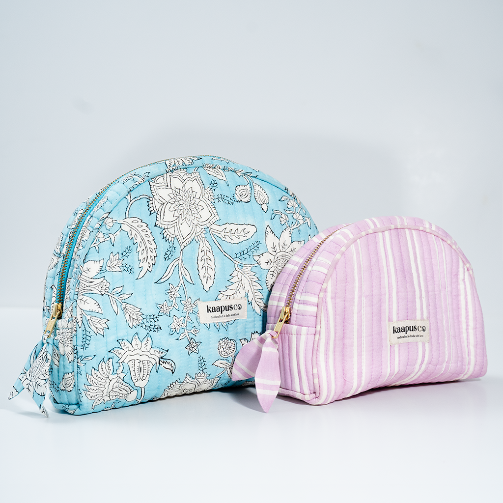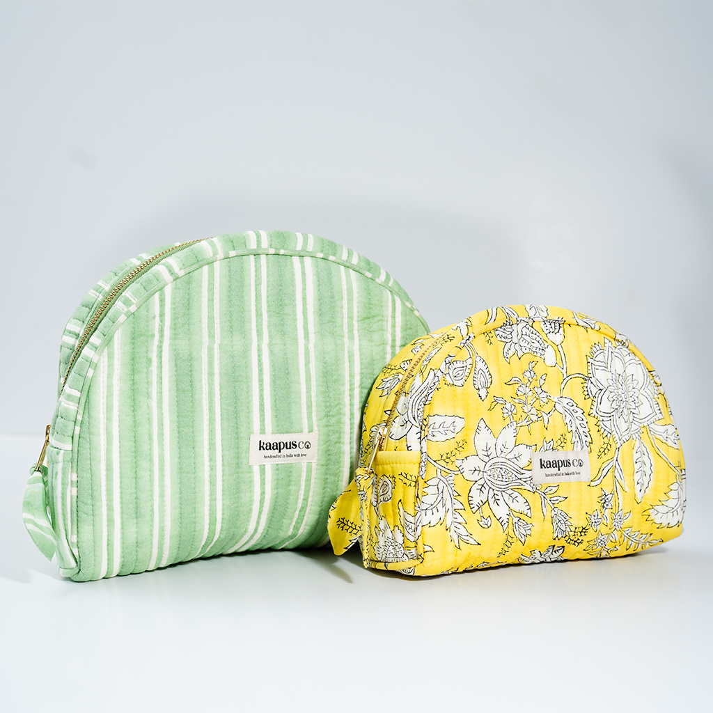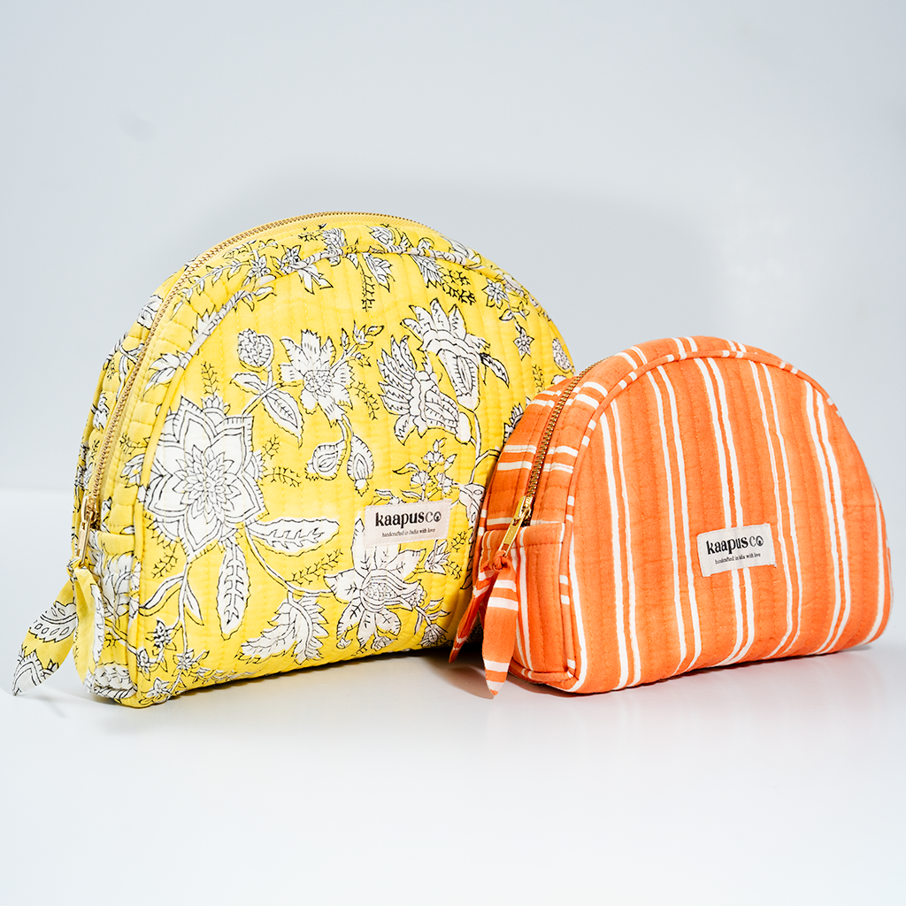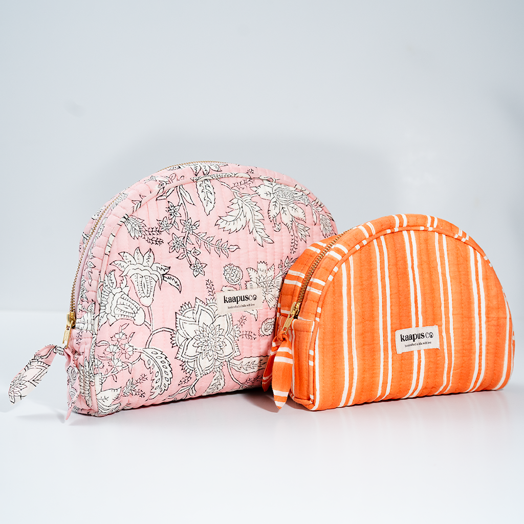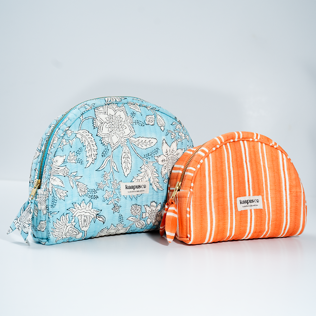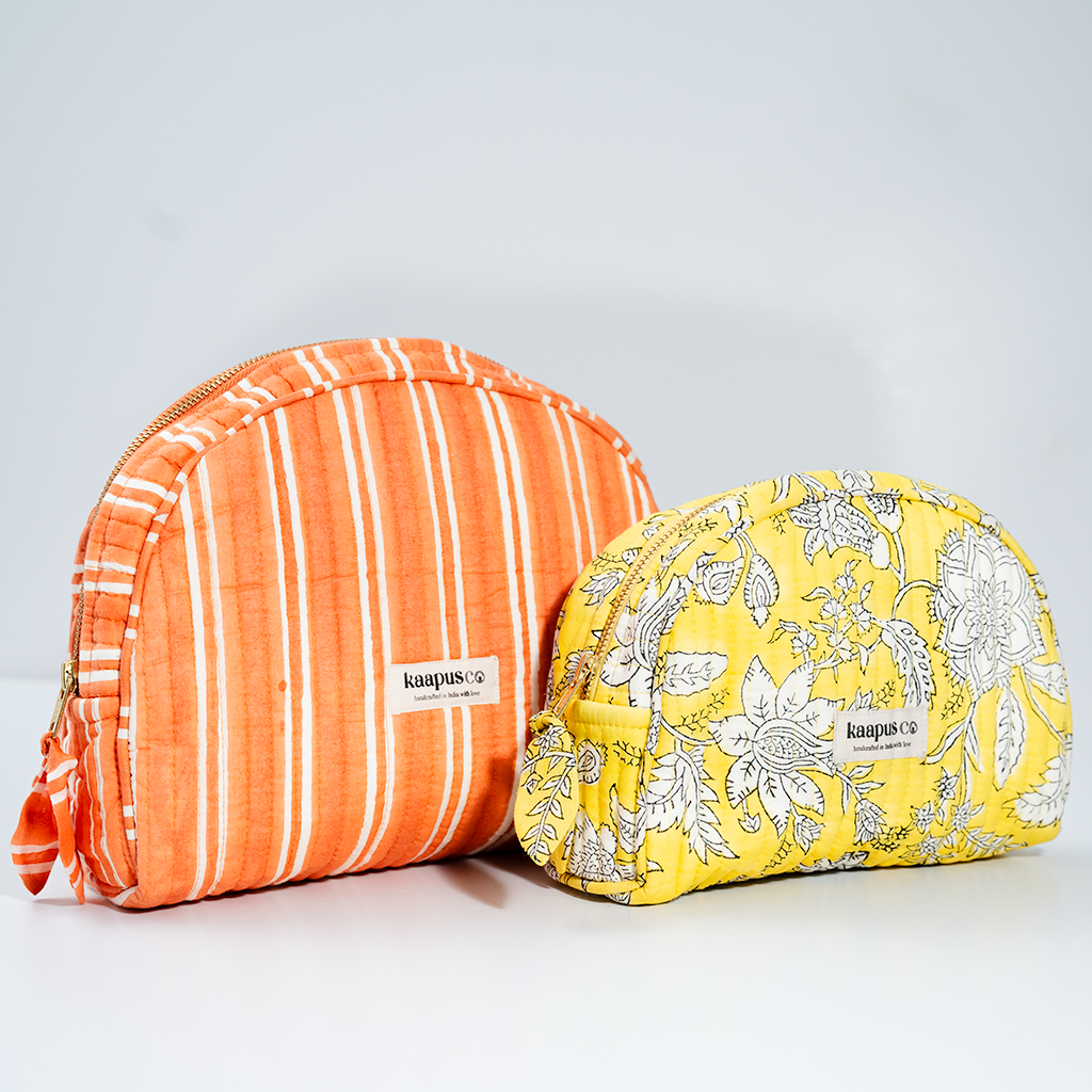 Meet our stylish, sustainable and artisanal range of bags and pouches. Hand made in India, these will quickly become an essential part of your every day routine!