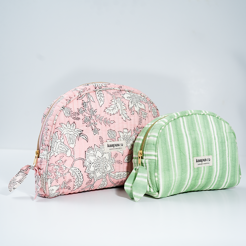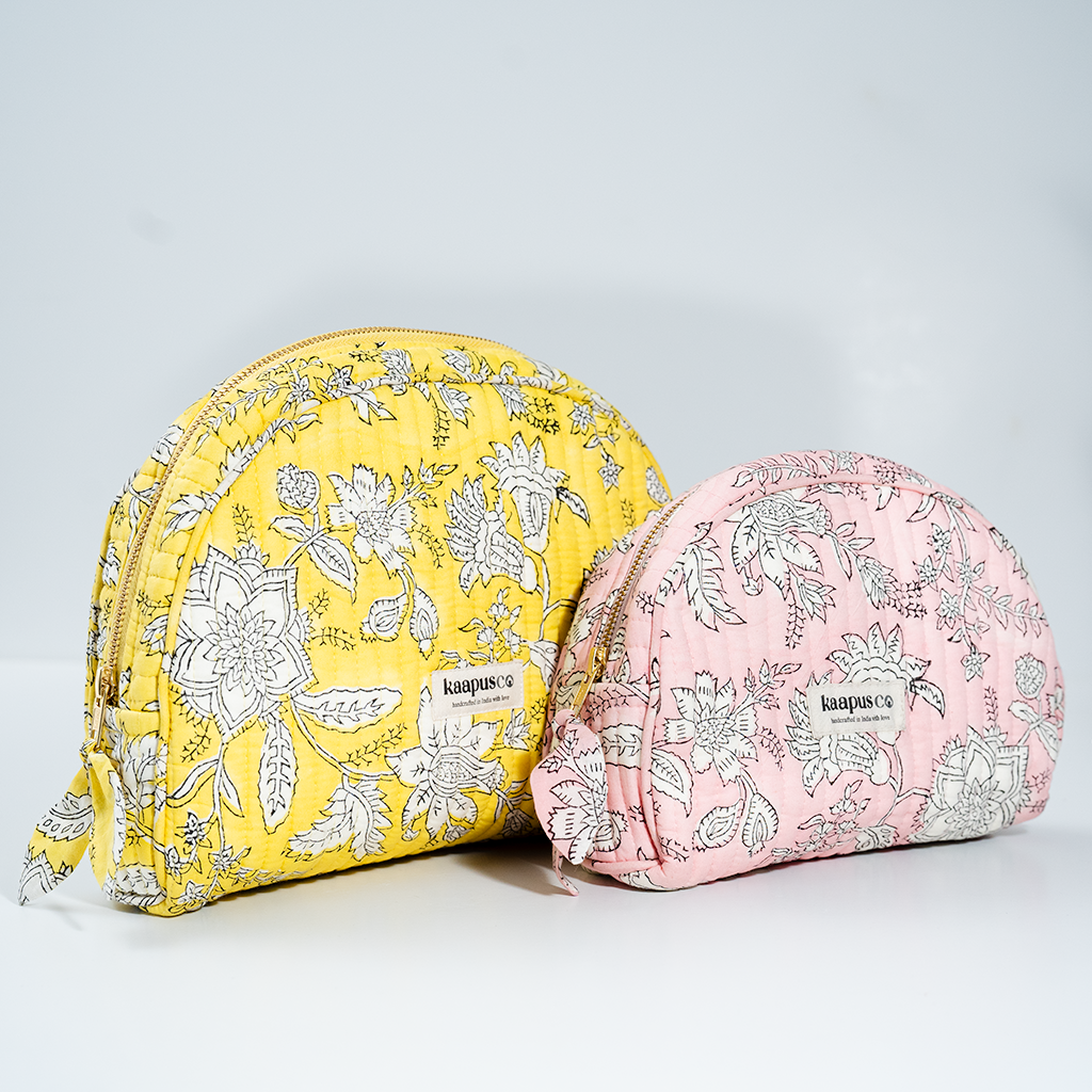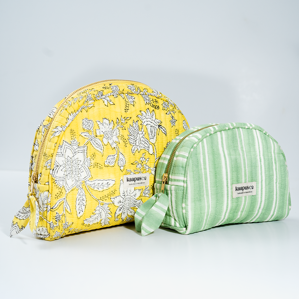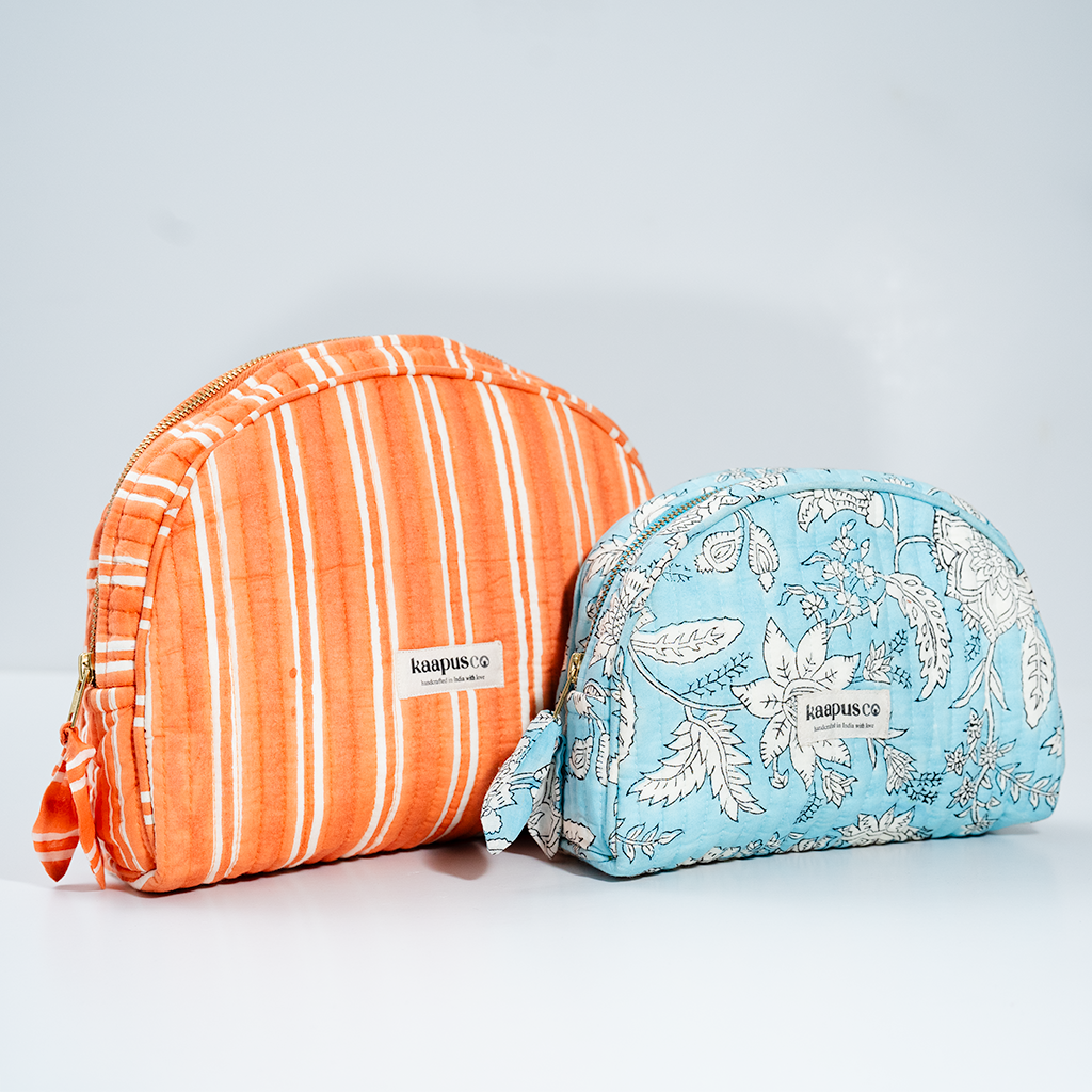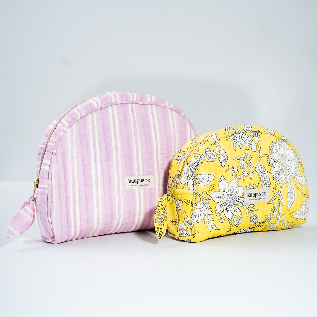 Meet our stylish, sustainable and artisanal range of bags and pouches. Hand made in India, these will quickly become an essential part of your every day routine!