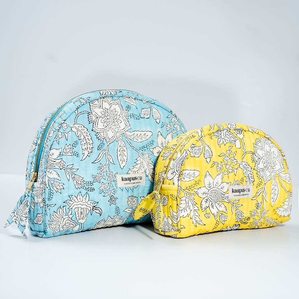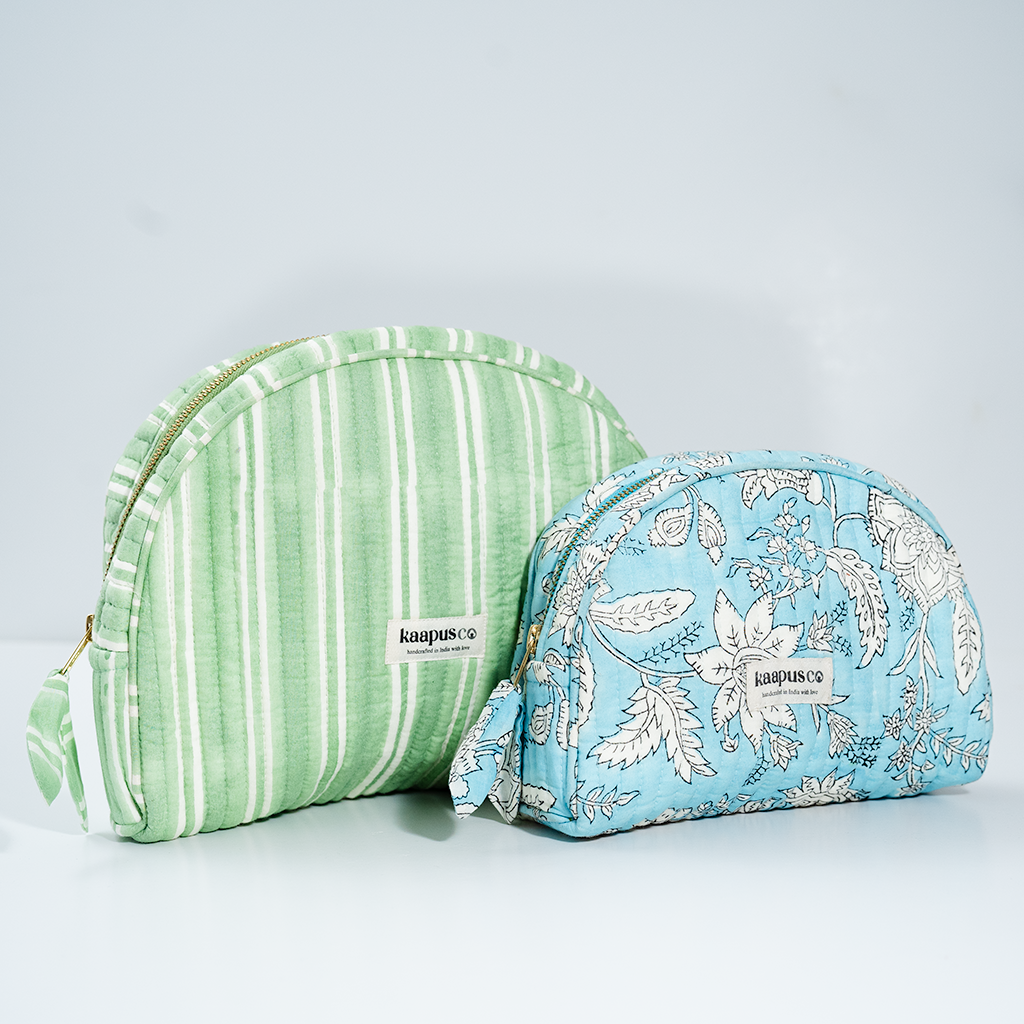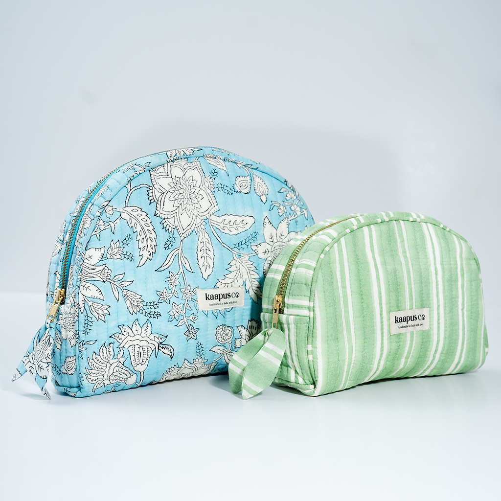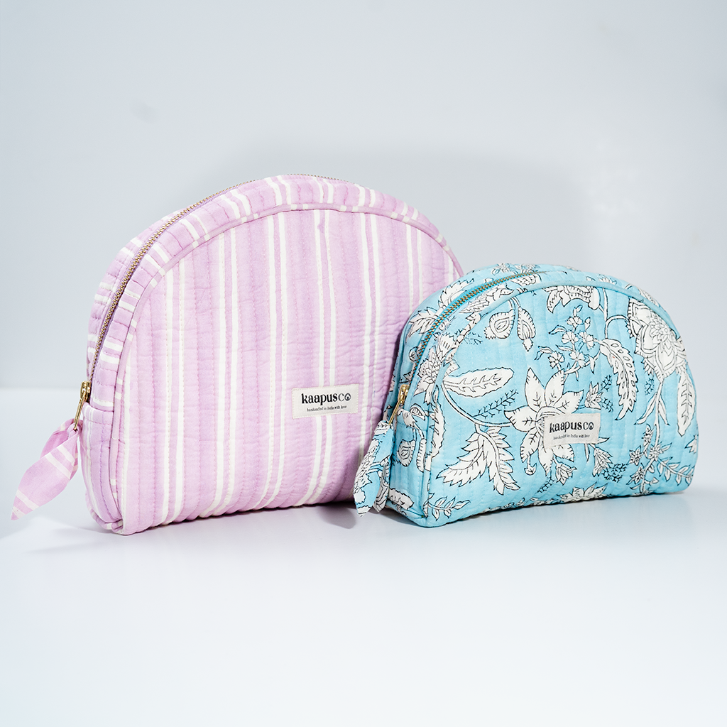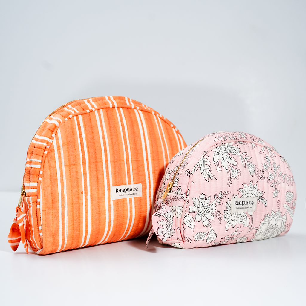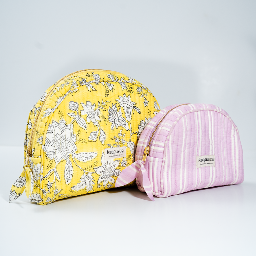 Meet our stylish, sustainable and artisanal range of bags and pouches. Hand made in India, these will quickly become an essential part of your every day routine!