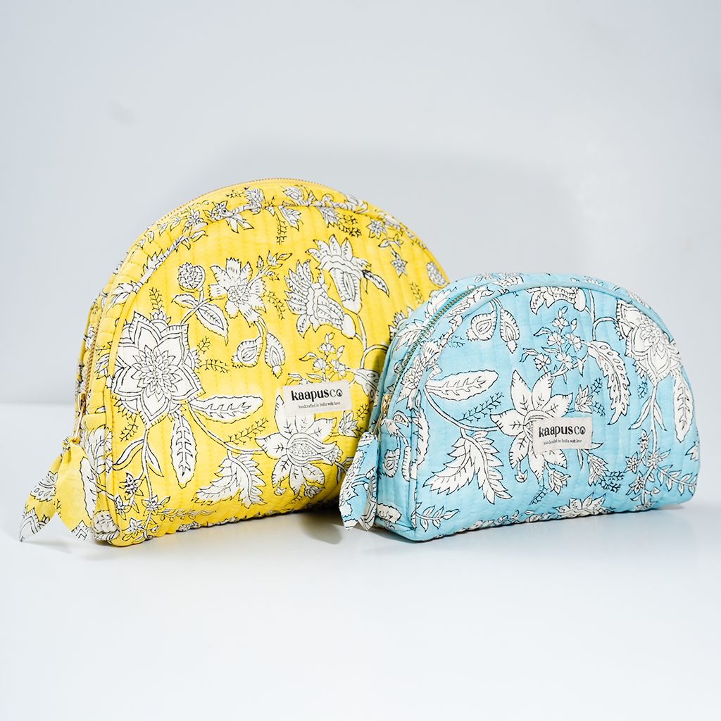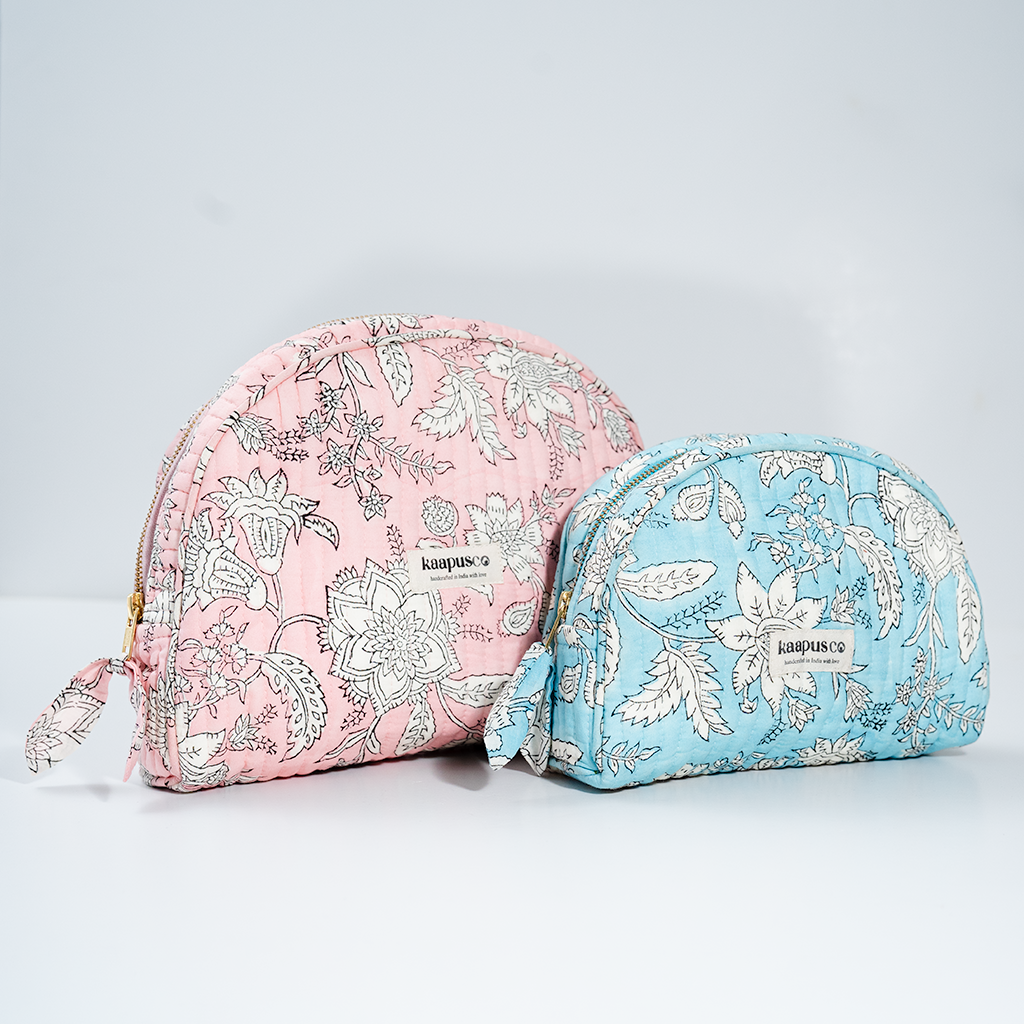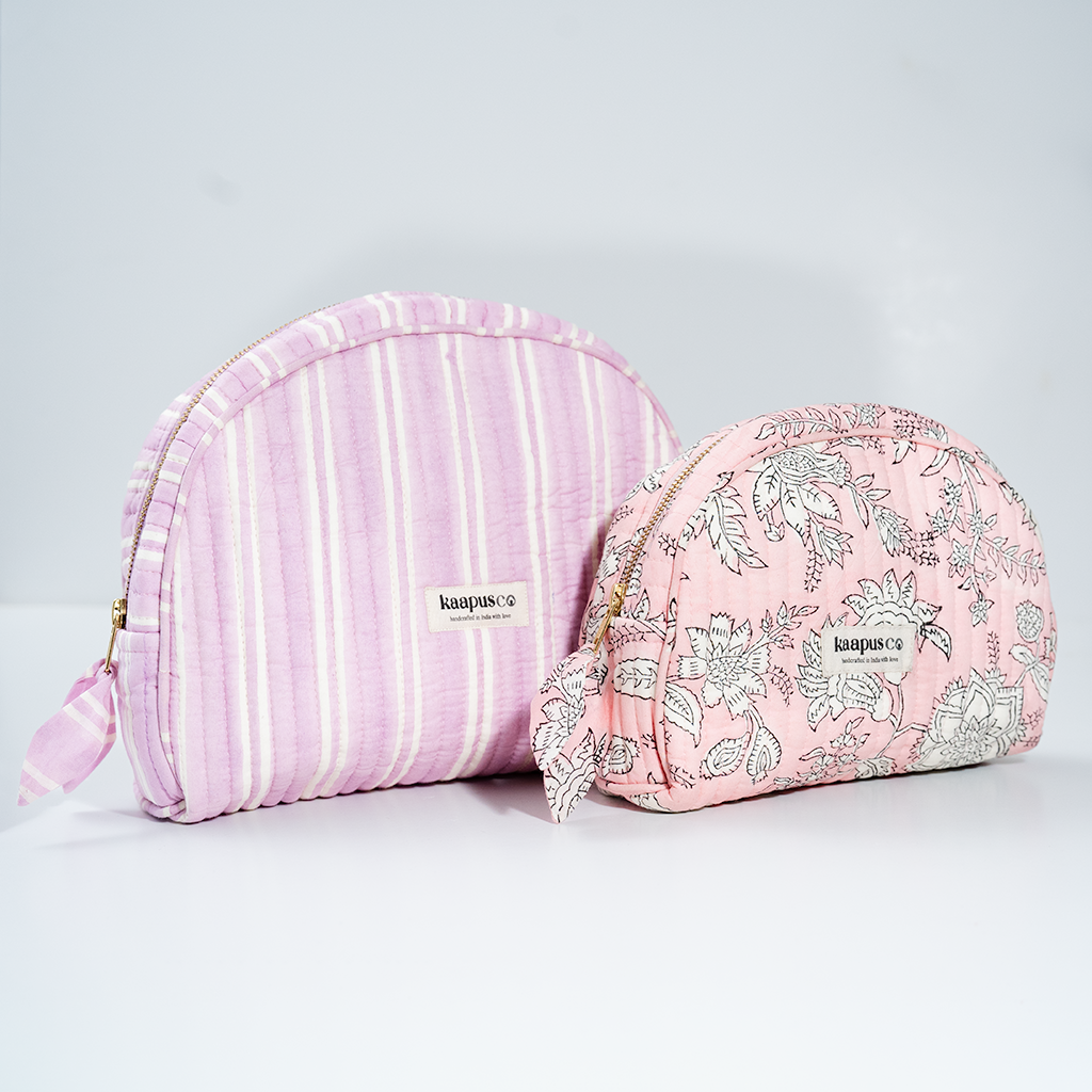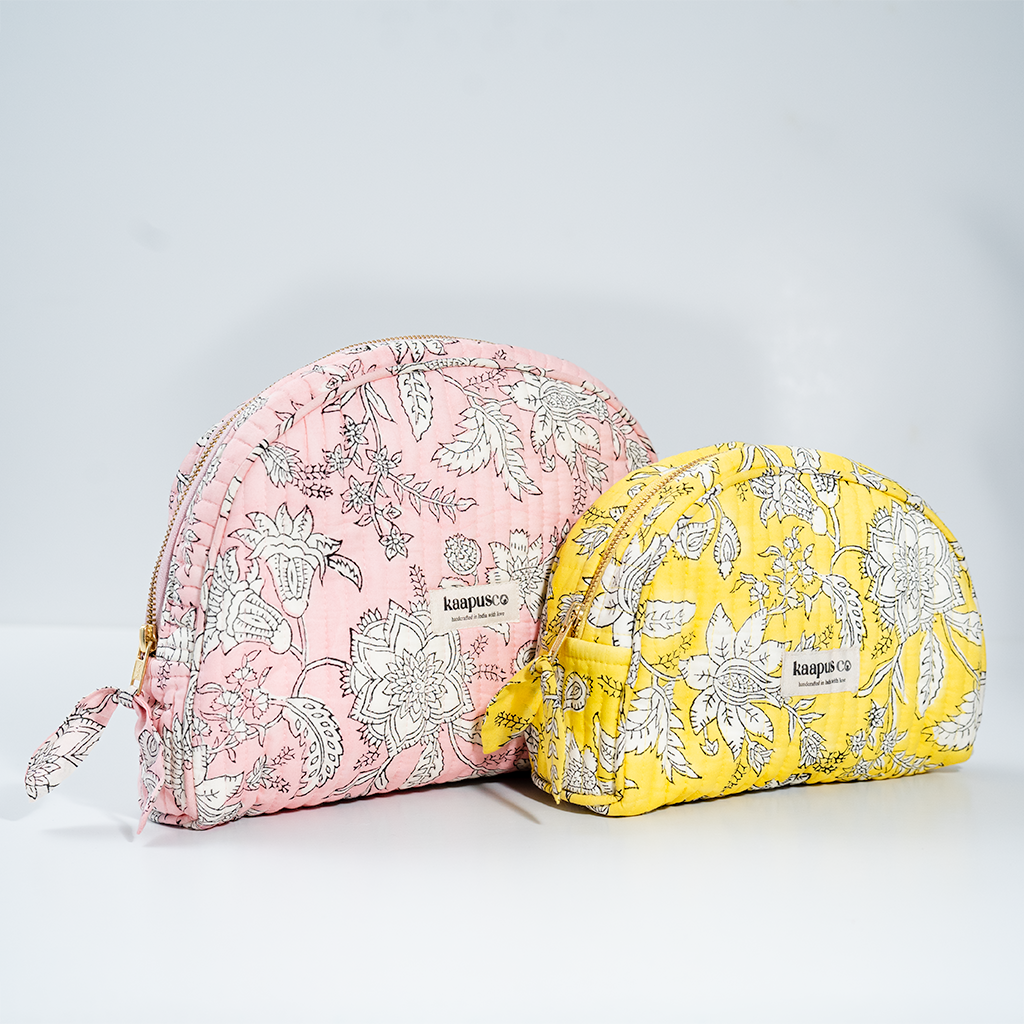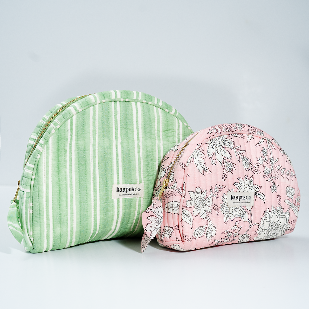 Meet our stylish, sustainable and artisanal range of bags and pouches. Hand made in India, these will quickly become an essential part of your every day routine!