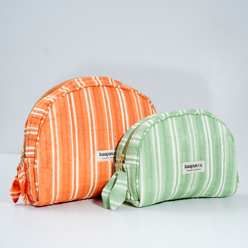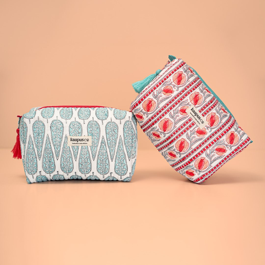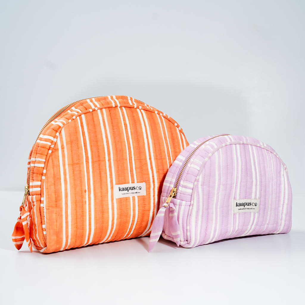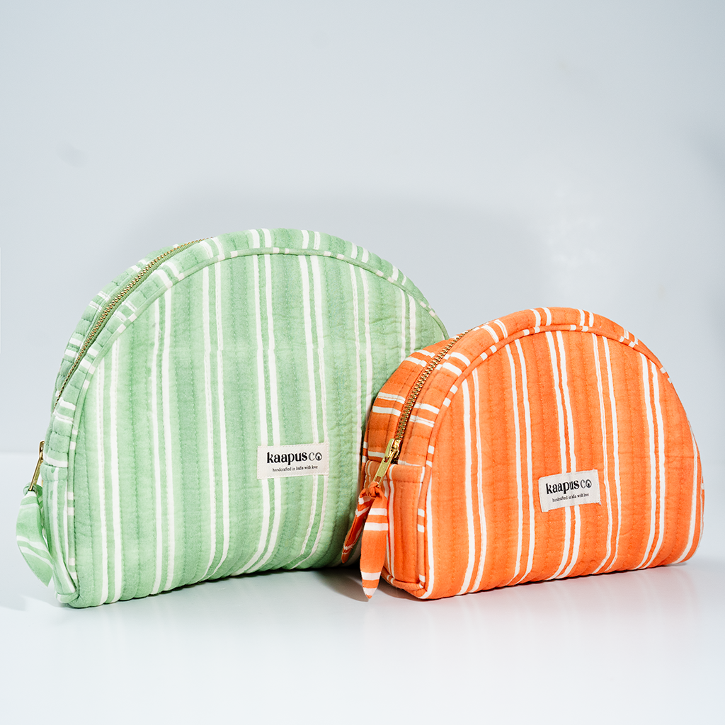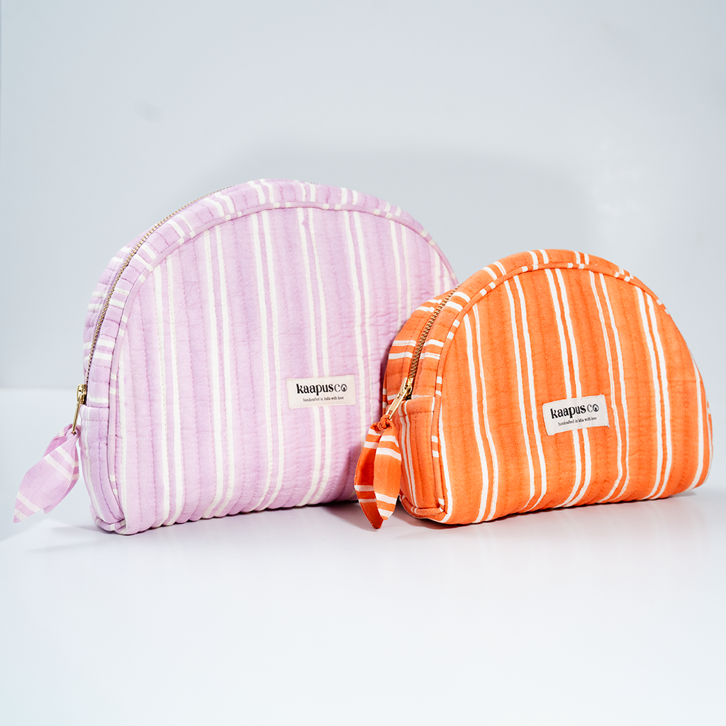 Meet our stylish, sustainable and artisanal range of bags and pouches. Hand made in India, these will quickly become an essential part of your every day routine!