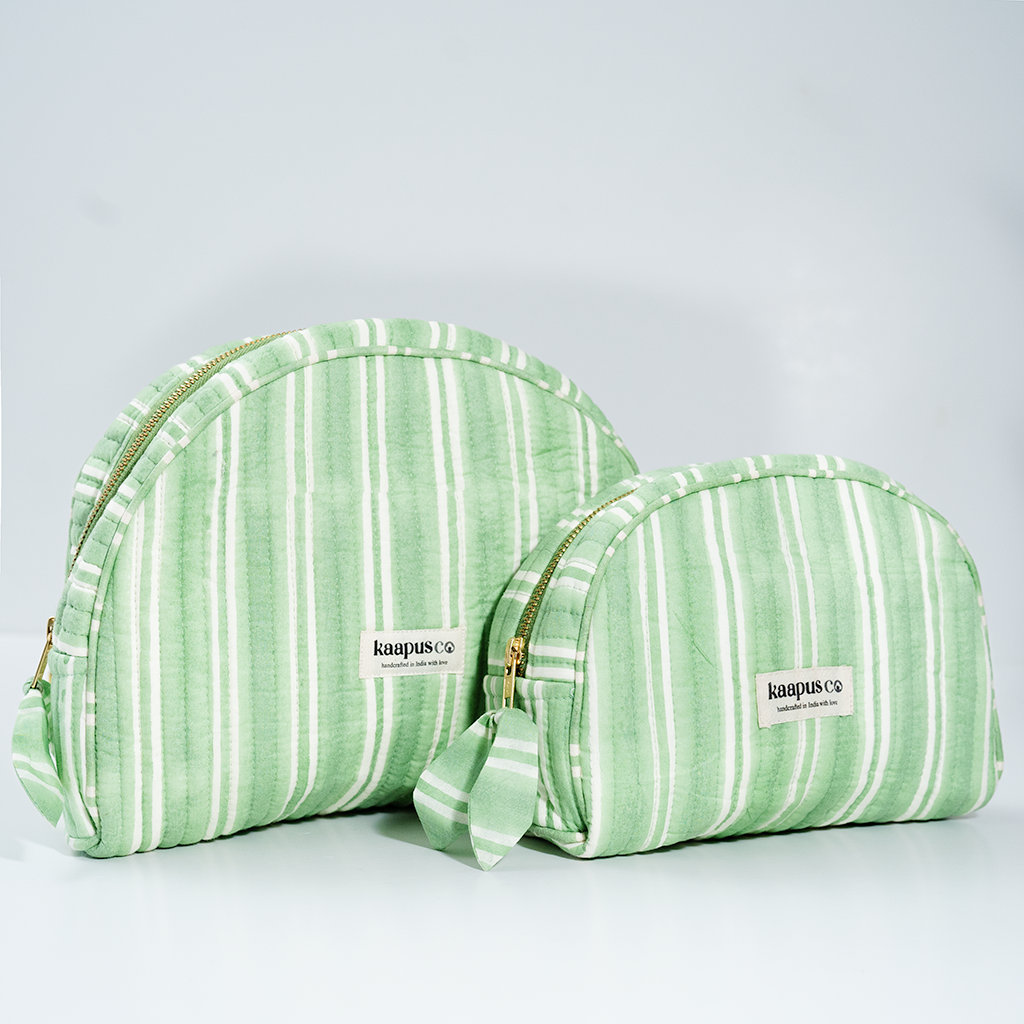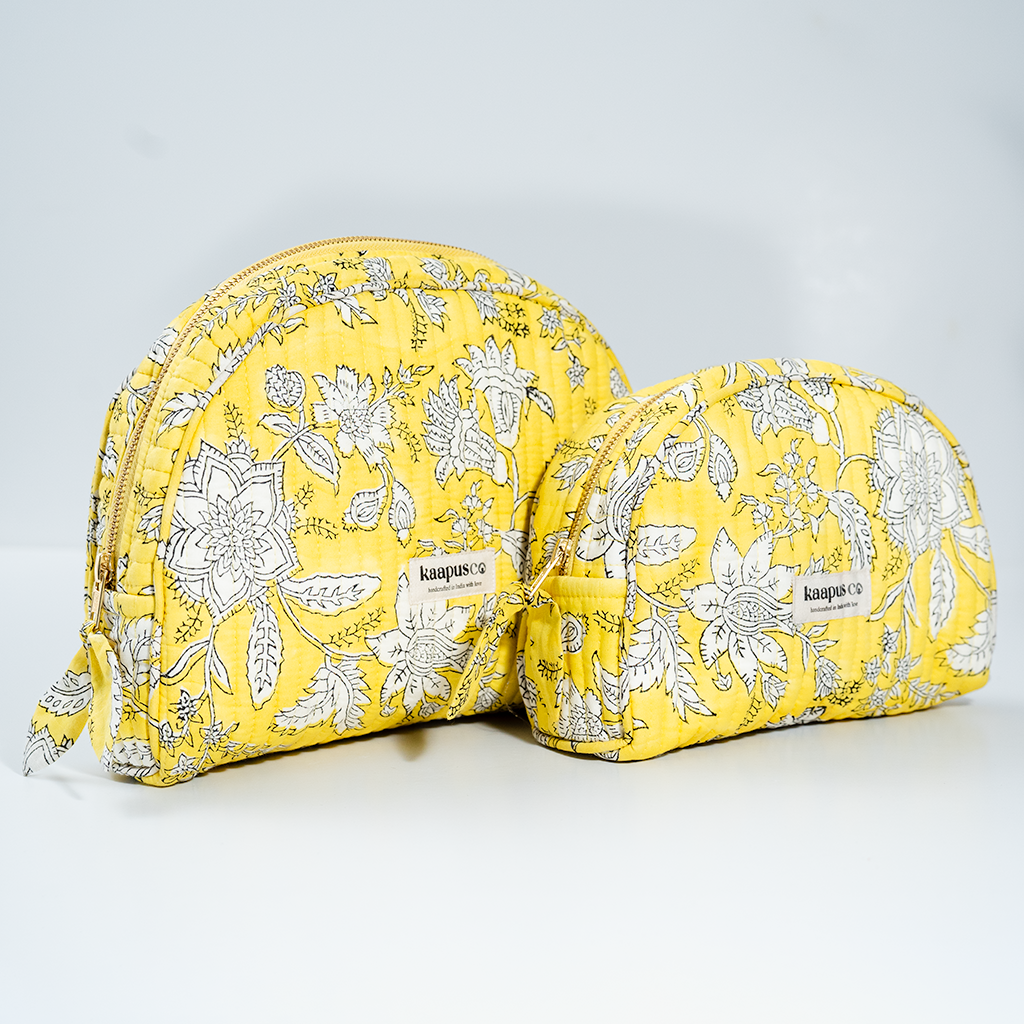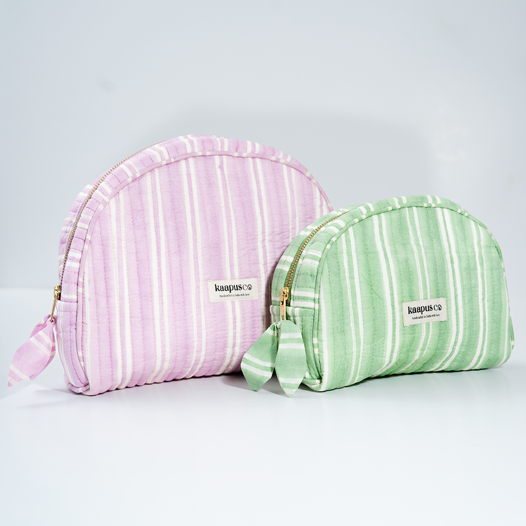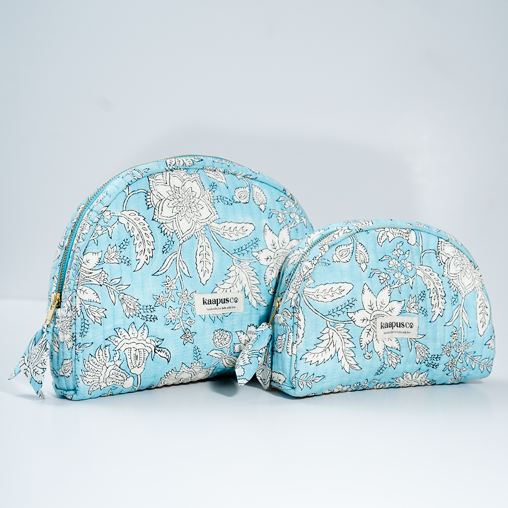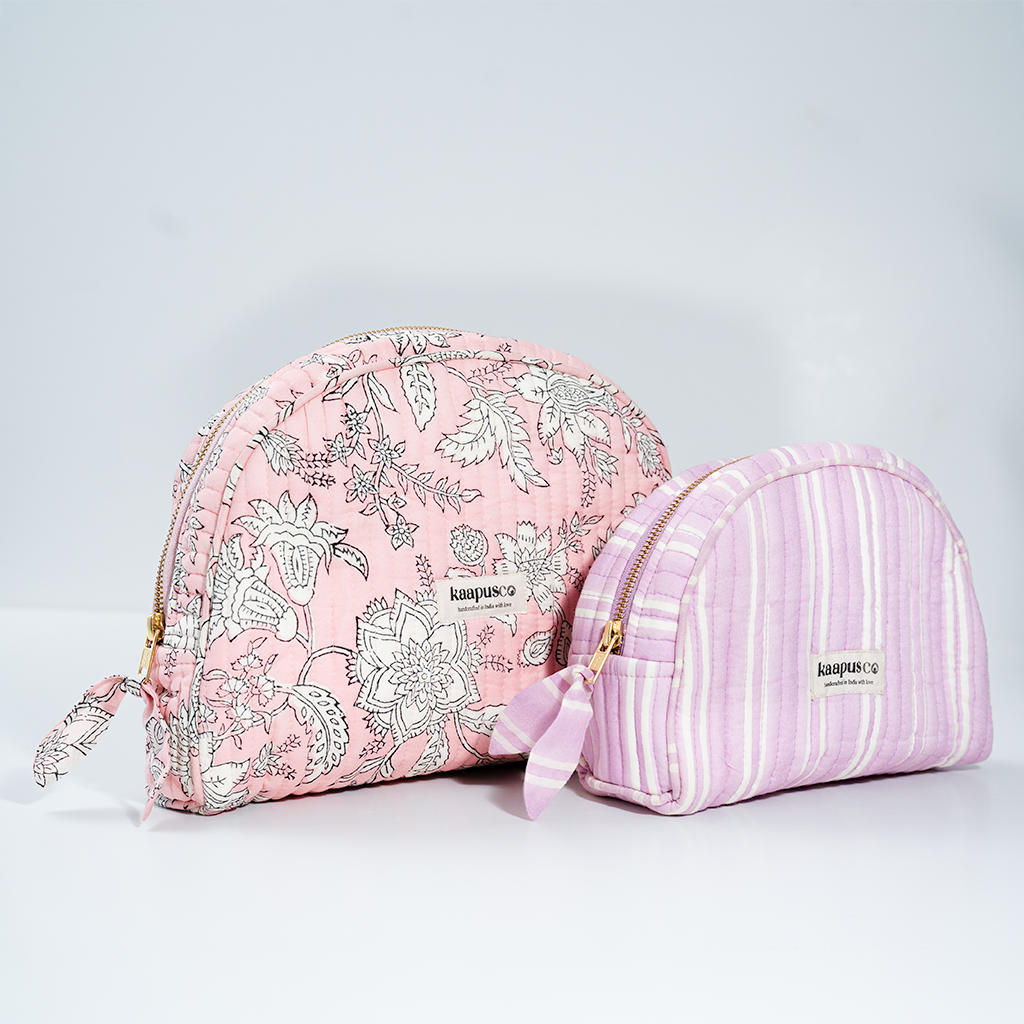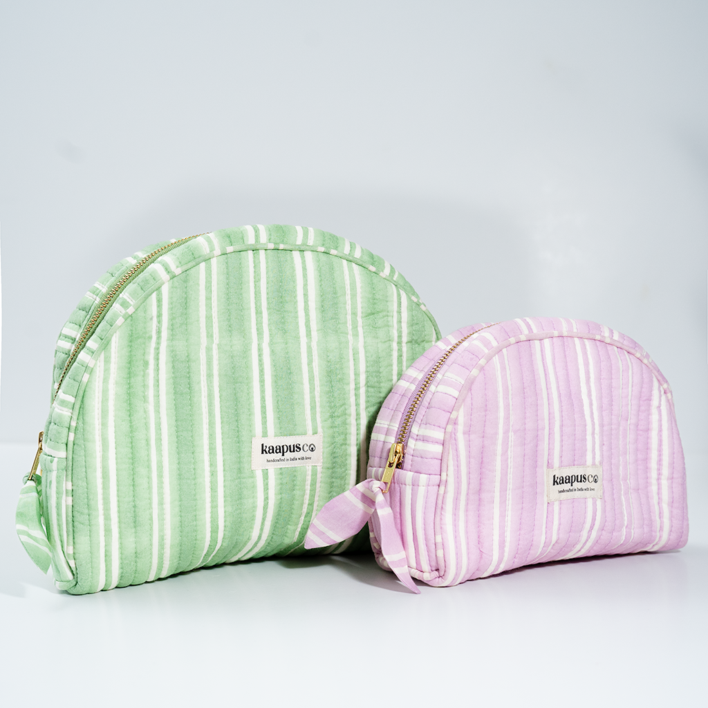 Meet our stylish, sustainable and artisanal range of bags and pouches. Hand made in India, these will quickly become an essential part of your every day routine!