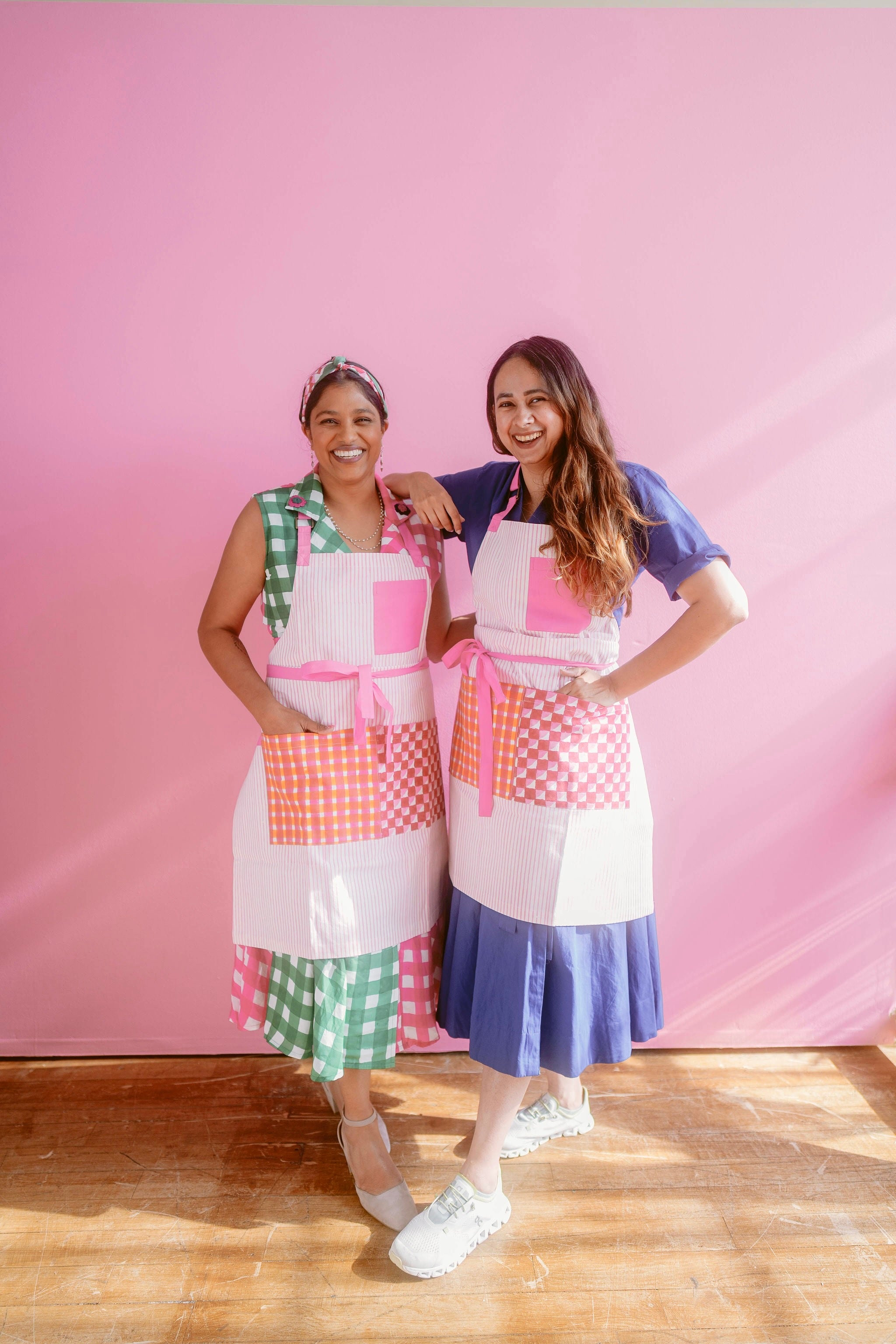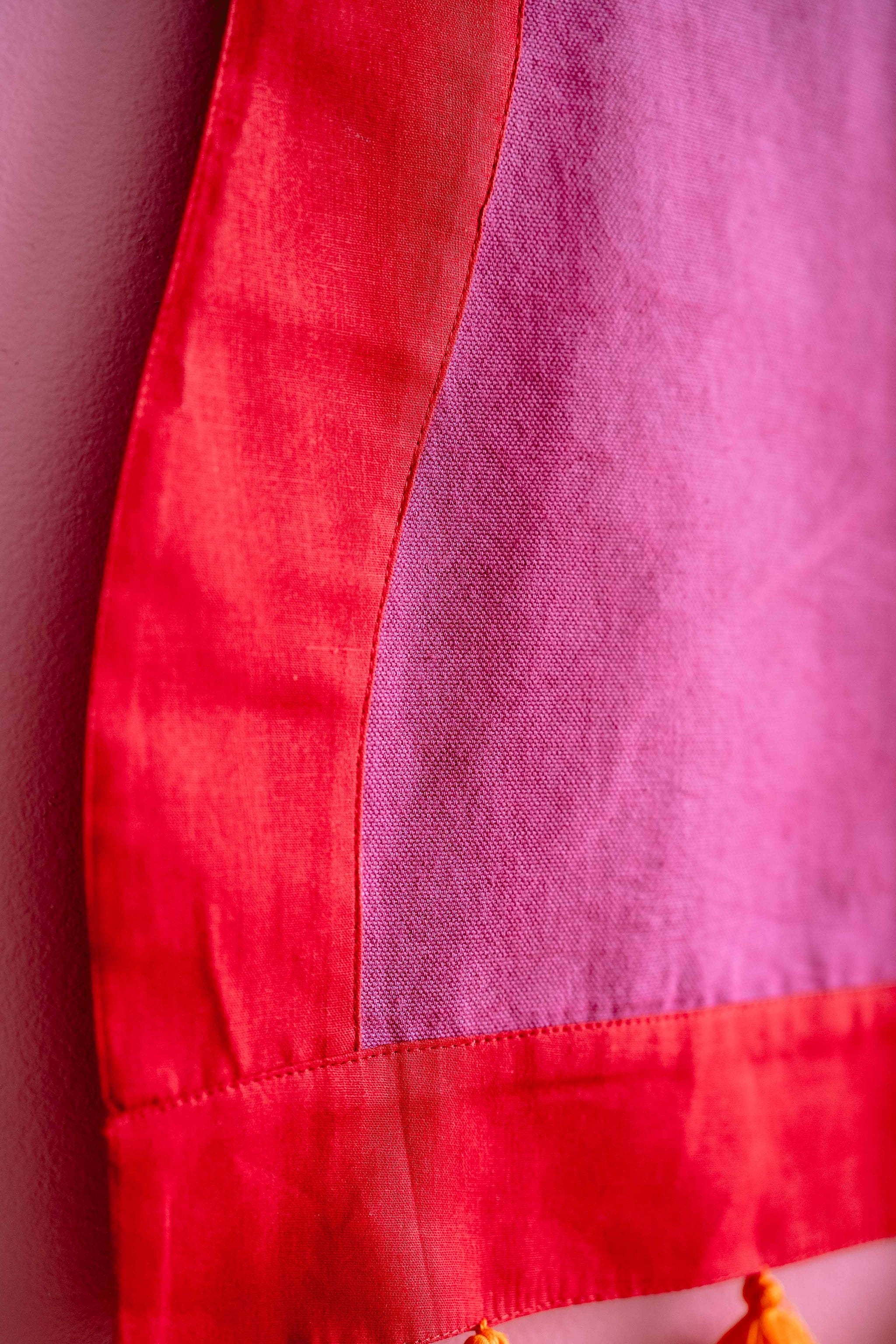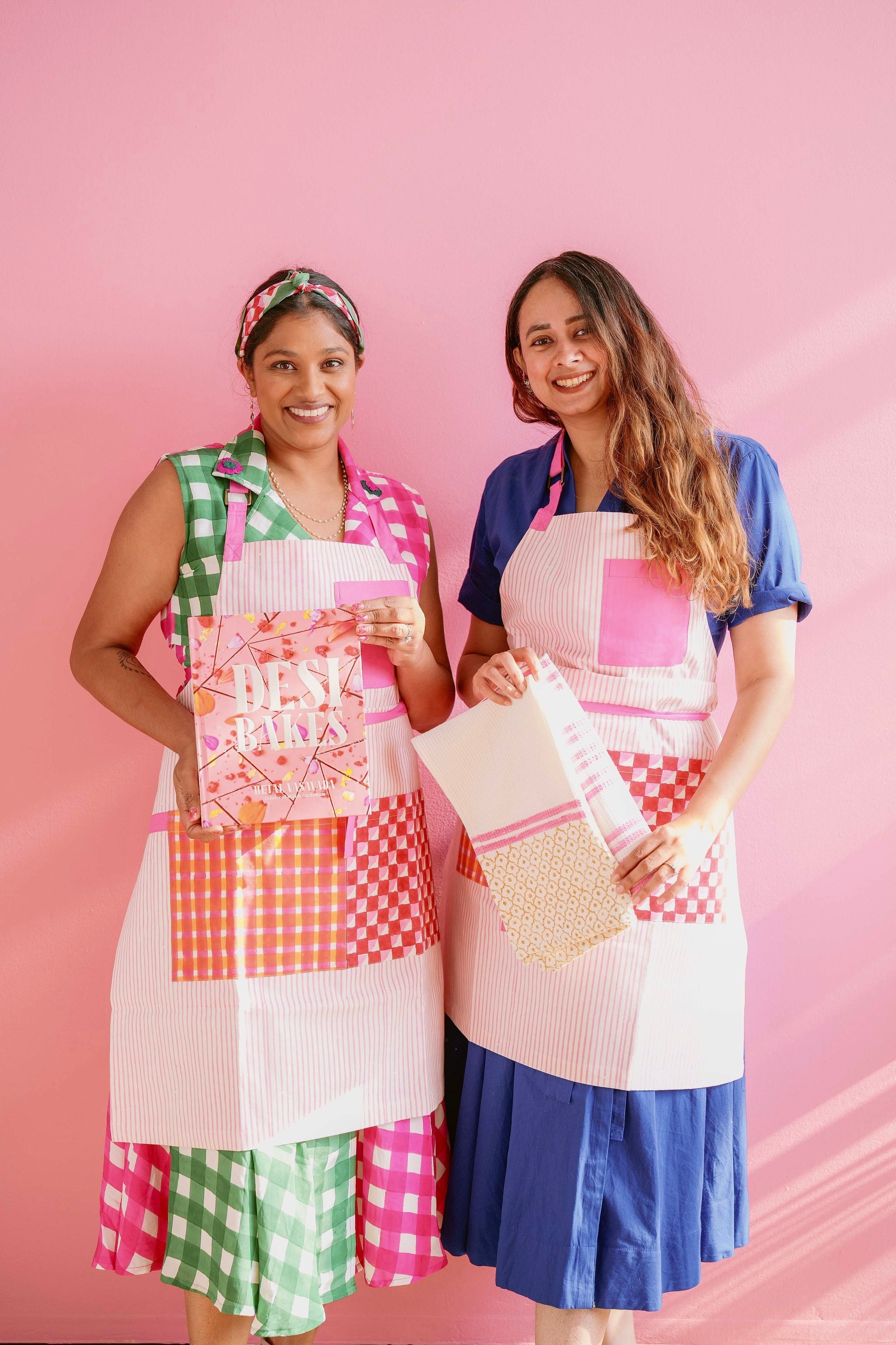 Get ready to bake with the Desi Bakes Falooda Apron! Made from sustainable organic cotton duck fabric, this playful apron features beautiful stripes in pink and orange. Easily machine washable, this apron is perfect for any messy baking session. Hand printed for a unique touch.